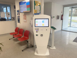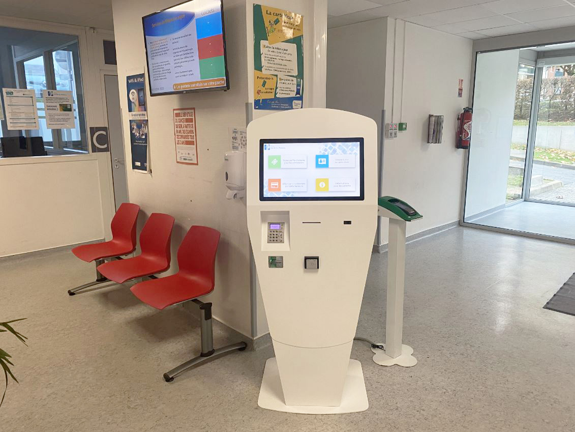 Cette solution se compose d’une borne permettant régler les consultations, gestion file d’attente et orientation des patients.