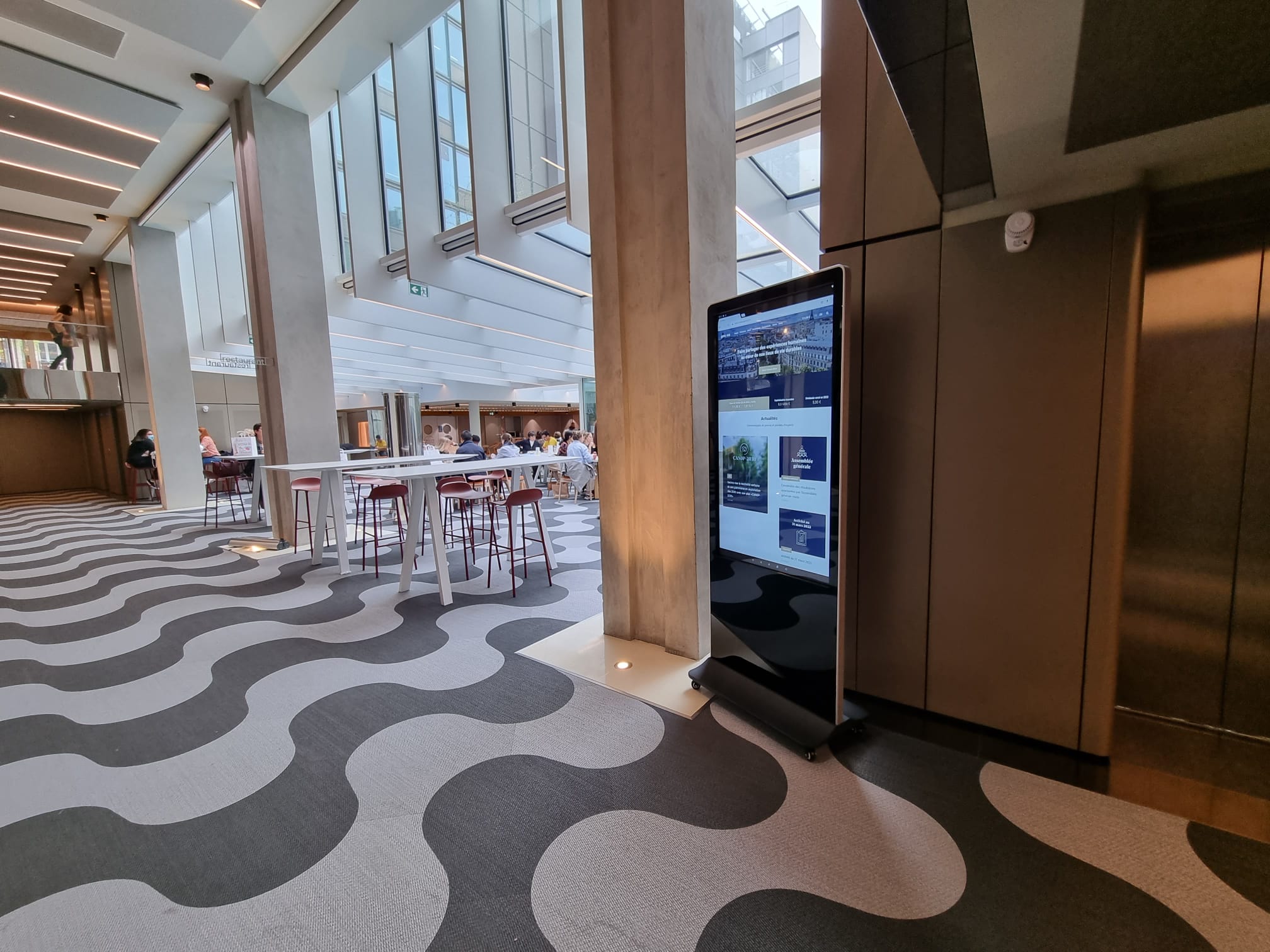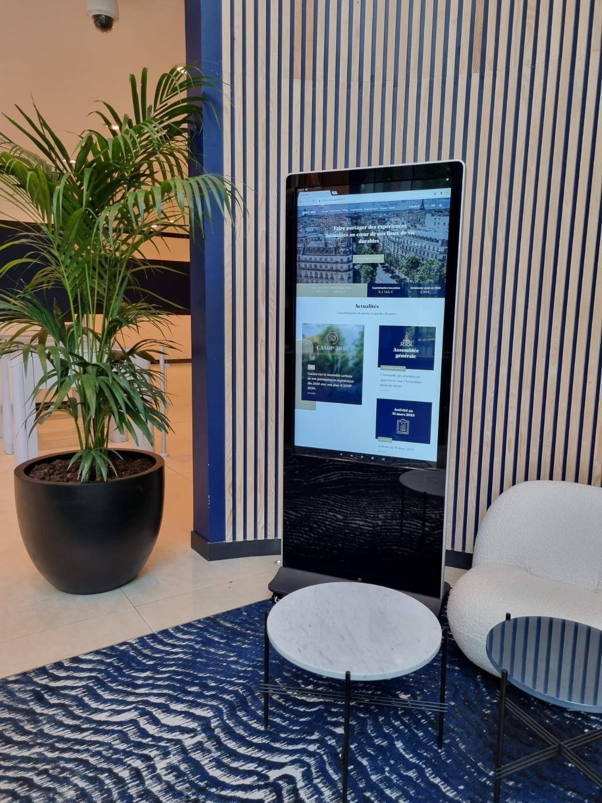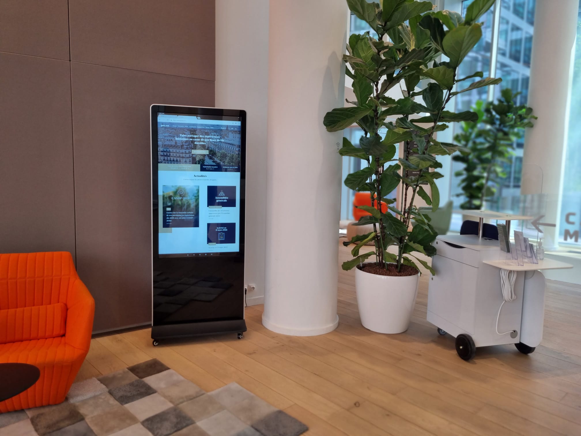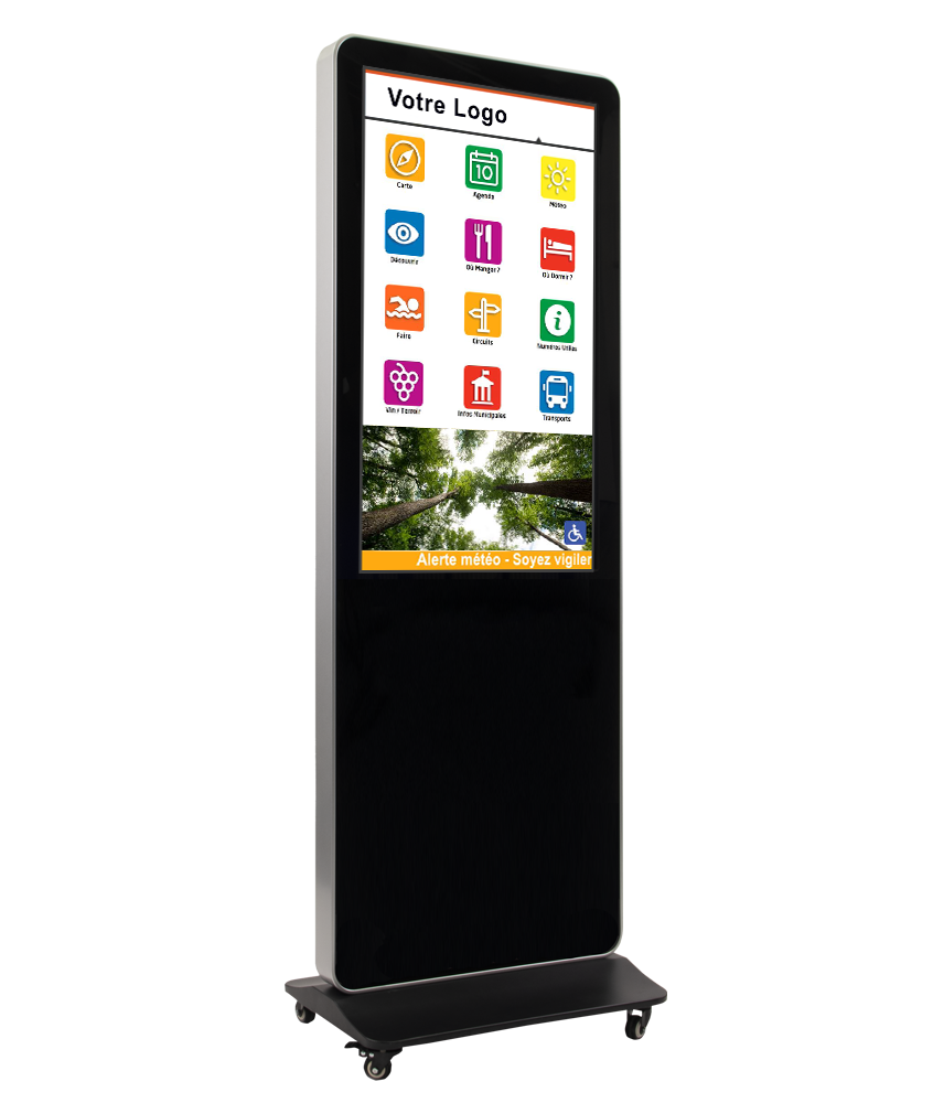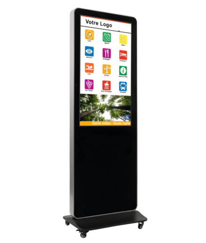 Sa structure acier-aluminium au design smartphone moderne valorise chaque emplacement sans l’encombrer, transformant vos messages en expériences mémorables qui guident et engagent vos visiteurs avec élégance.