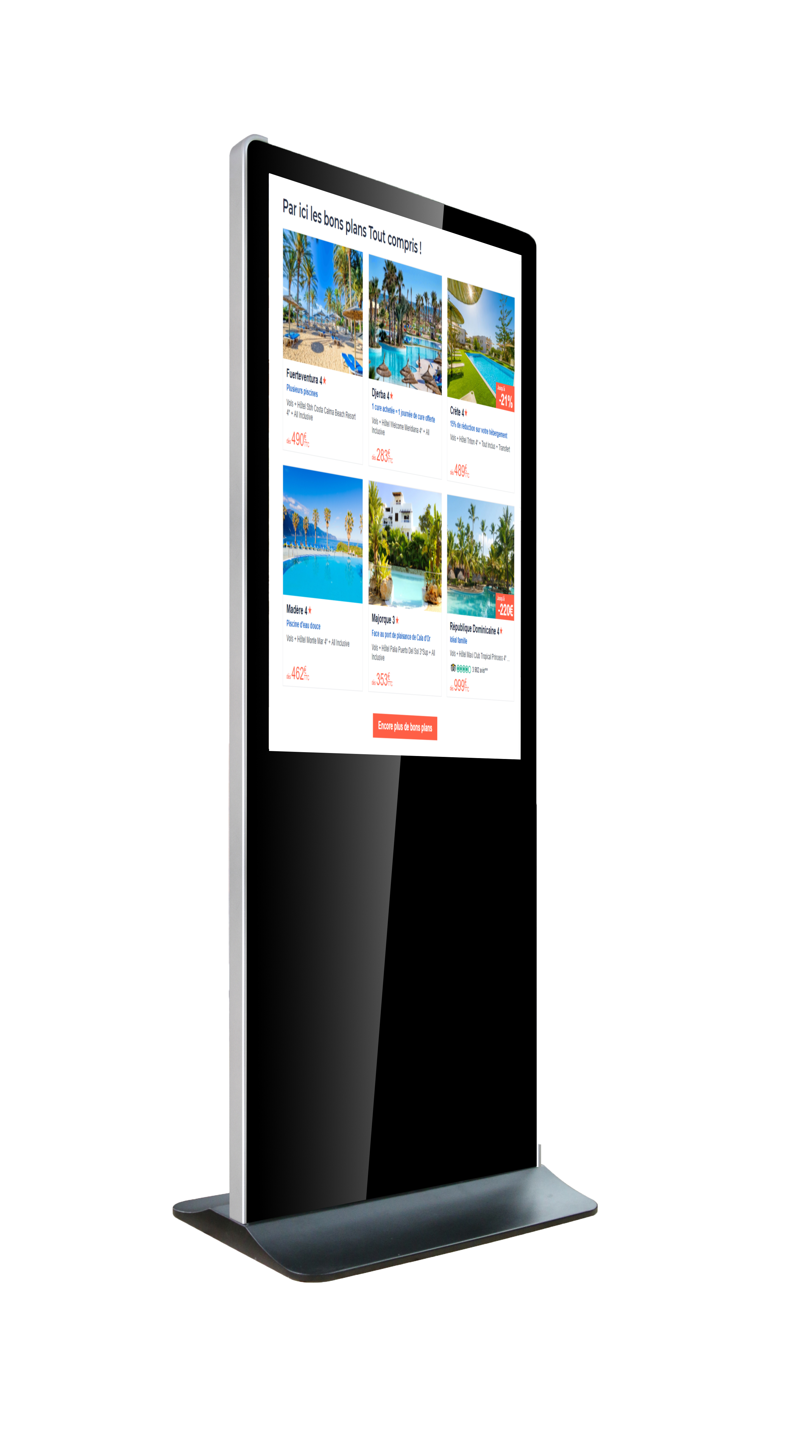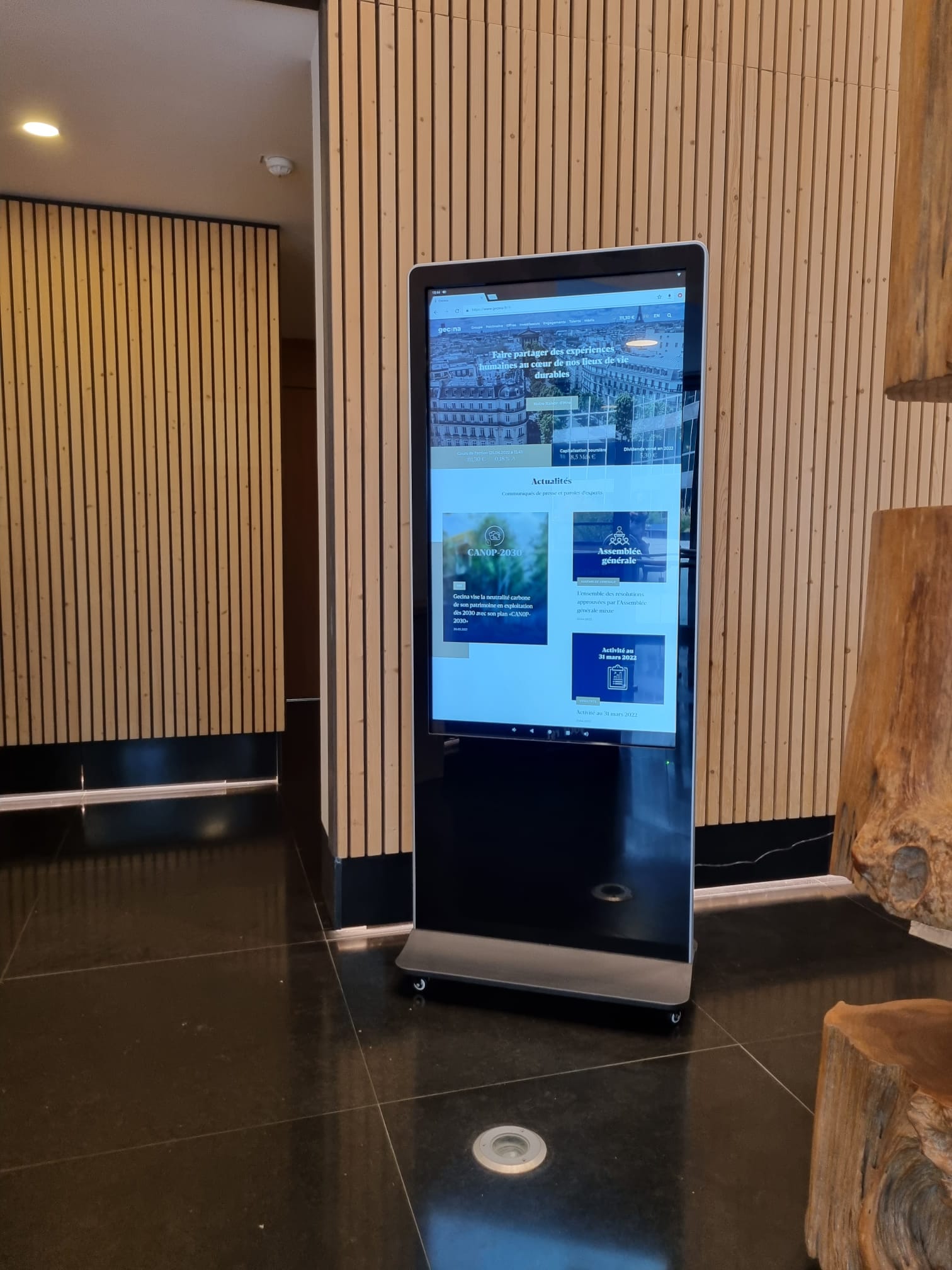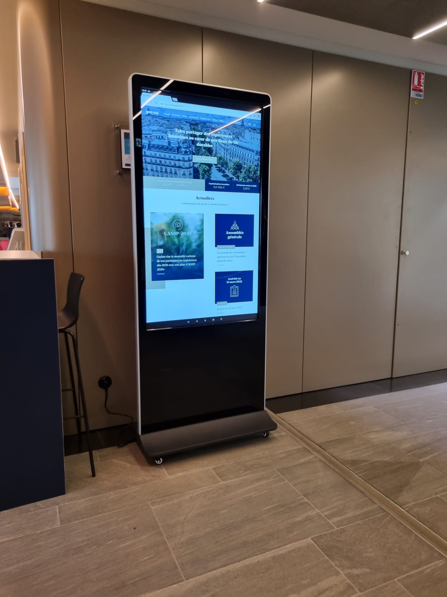 Totem Vidéo 43, 49, 55, 65, 75 pouces Full HD – 4K Indoor, conçu pour dynamiser votre communication intérieure avec une qualité d’image saisissante.