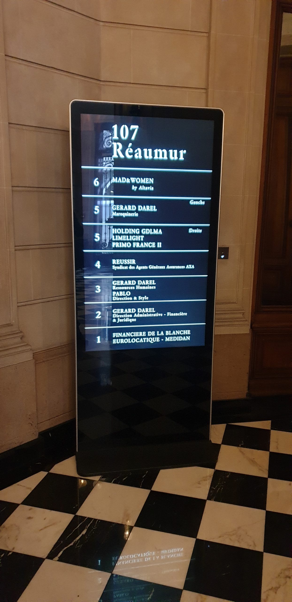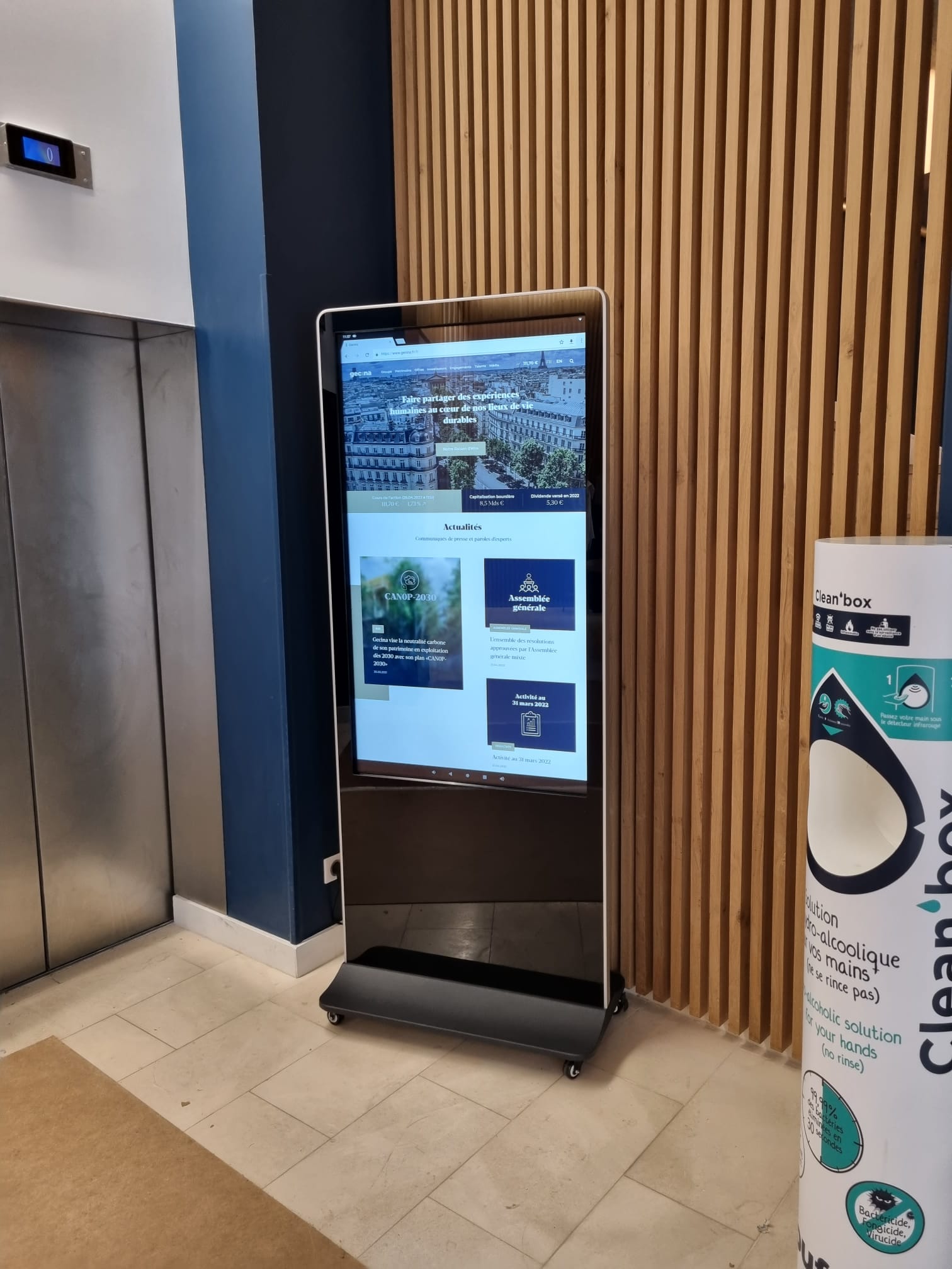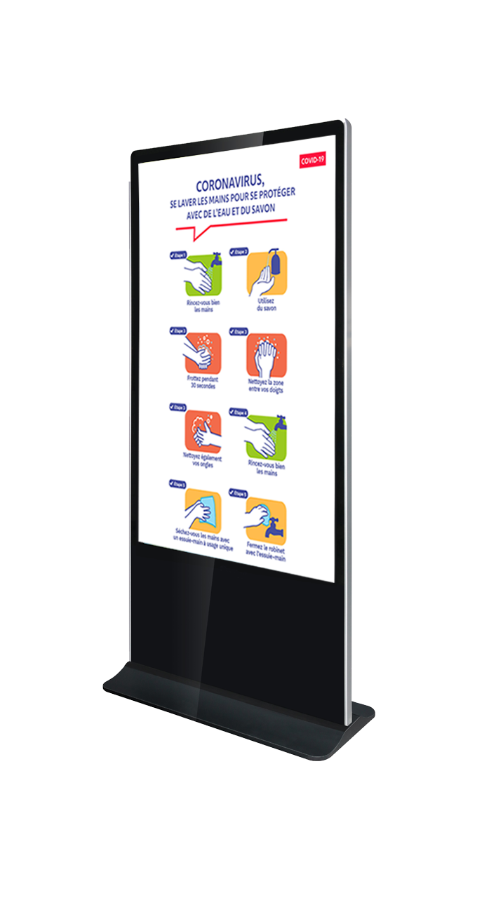 Totem Vidéo 43, 49, 55, 65, 75 pouces Full HD – 4K Indoor, conçu pour dynamiser votre communication intérieure avec une qualité d’image saisissante.
