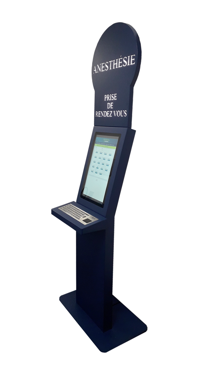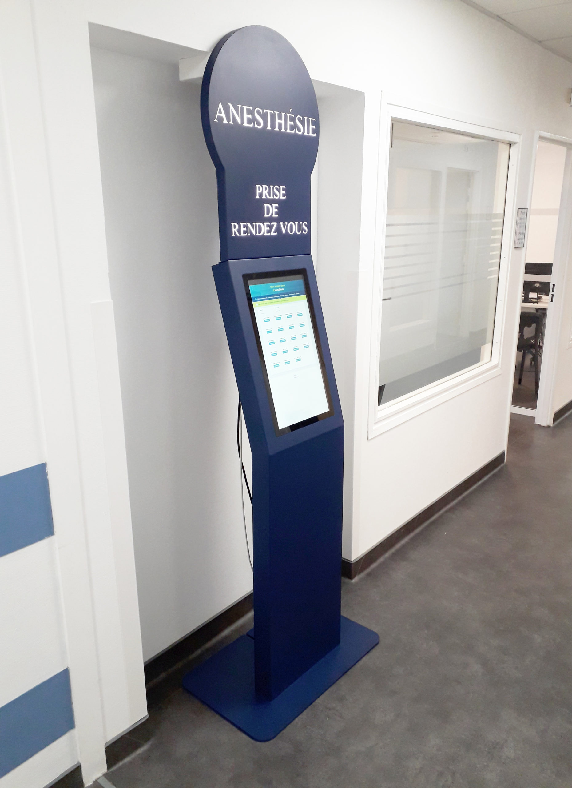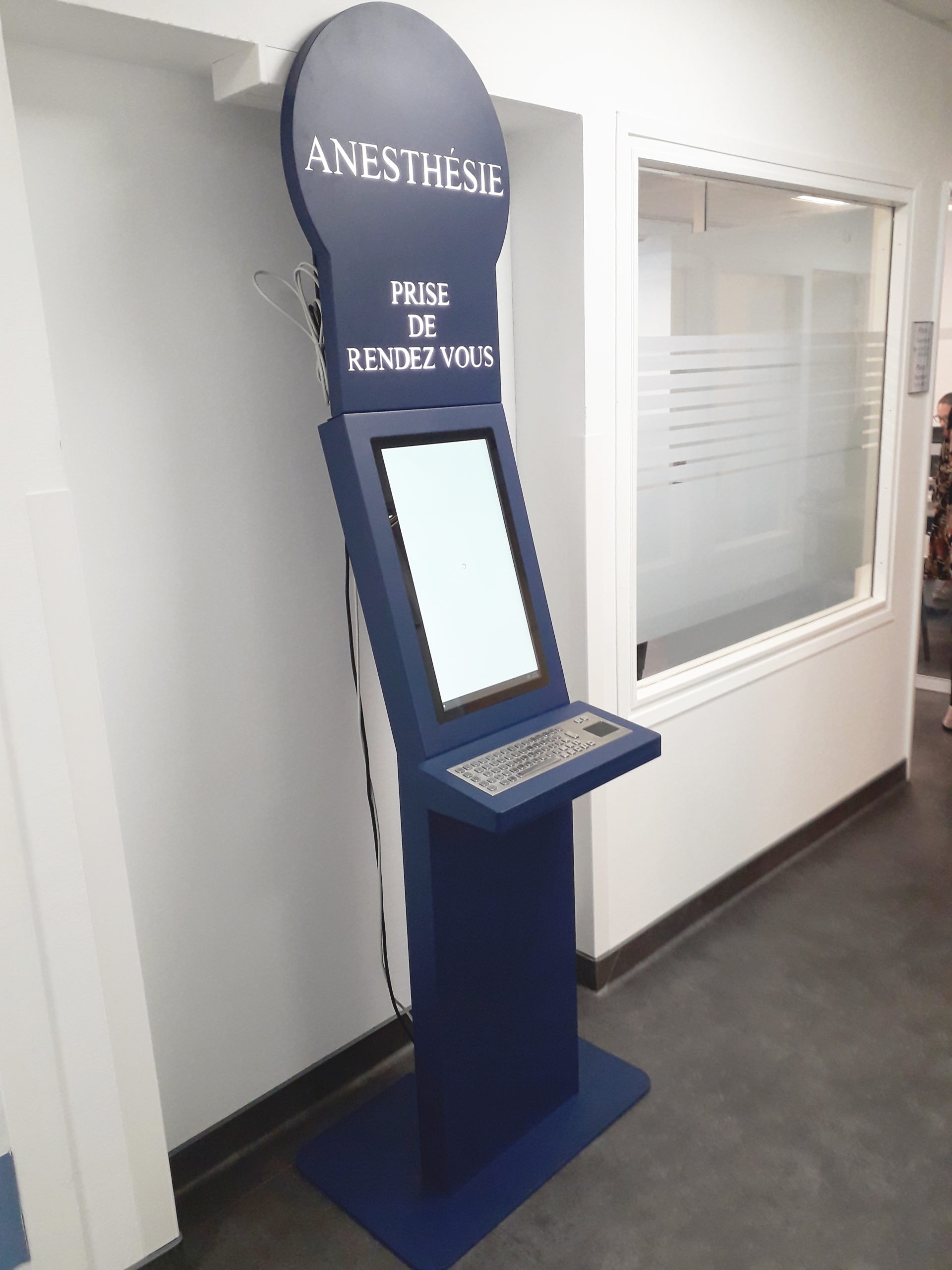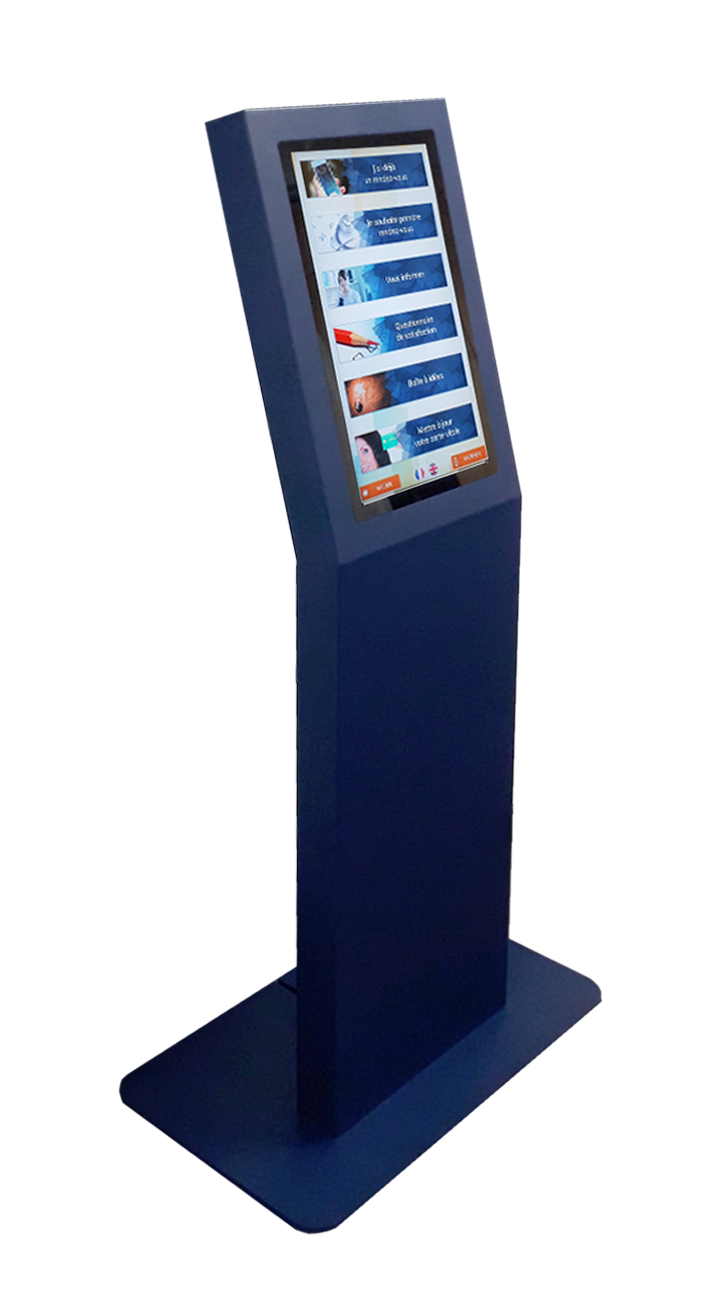 Borne d’intérieur 22 pouces tactile en format portrait, pensée pour une lisibilité optimale dans les environnements verticaux.
