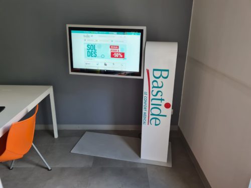 Borne PMR Flextour, dernière-née de la gamme intérieure tactile avec écran Full HD en 22 ou 32 pouces, pensée pour un usage inclusif optimal.
