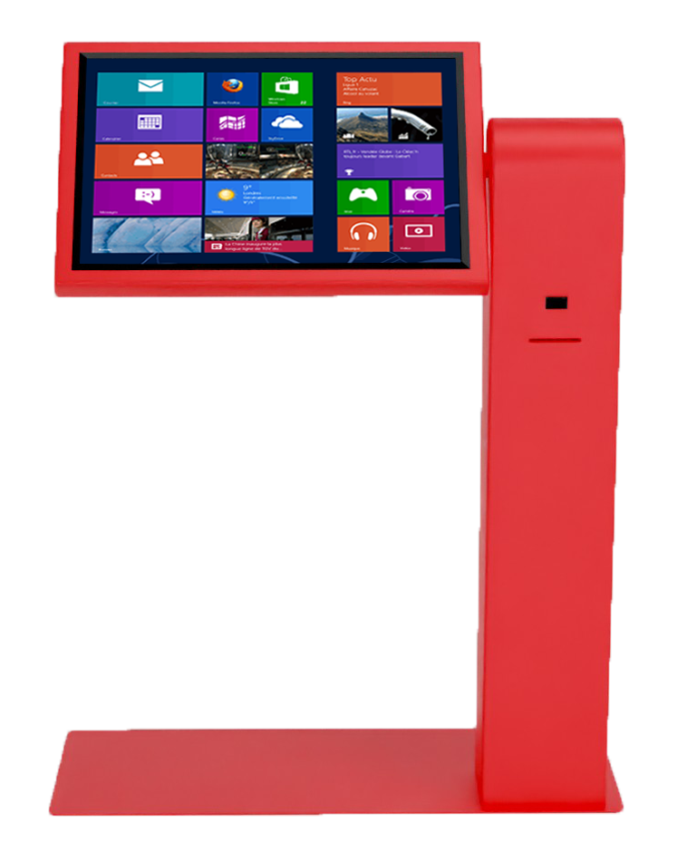 Son écran inclinable à 90° offre un confort d’interaction parfait, que l’utilisateur soit assis ou debout, garantissant une accessibilité naturelle pour tous. Vos projets prennent vie grâce à des options adaptées comme les lecteurs CB, RFID, NFC, QR code ou l’imprimante tickets, qui répondent précisément à chaque besoin fonctionnel.