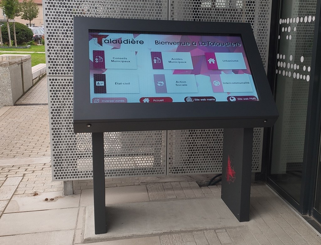 Borne tactile extérieure haute luminosité, fabriquée pour performer même sous un fort ensoleillement grâce à son écran spécifiquement optimisé.