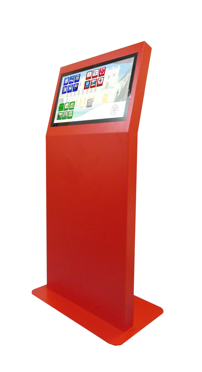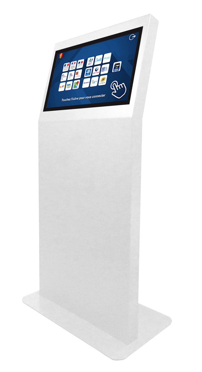Borne tactile intérieure 22, 24 et 27 pouces au design épuré ultra-fin de dernière génération, prête pour un usage intensif dans les lieux à forte fréquentation.