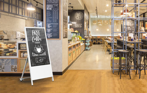 Tableau d’affichage dynamique 43 pouces sur batterie : autonomie totale, installation instantanée, impact maximal.